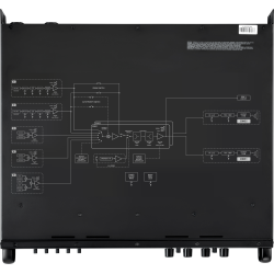 -EQ: Cada zona tiene control de graves y agudos con un modo de filtro de paso bajo; filtro de paso alto conmutable en CH1/2.