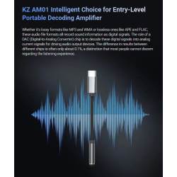 El KZ AM01 cuenta con el chip amplificador independiente MAX97220, que se adapta dinámicamente a cargas de hasta 600 Ω (suficiente para alimentar la mayoría de los auriculares del mercado). Esto garantiza una salida de audio más limpia y potente, al tiempo que minimiza la distorsión.