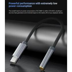El chip de decodificación DAC de alto rendimiento integrado en el KZ AM01 utiliza el último proceso de fabricación, con un consumo de energía en modo de espera de tan solo 10 mW/h. (La mayoría de los chips de decodificación del mercado tienen un proceso de fabricación obsoleto e, incluso sin carga, tienen un alto consumo de energía de 40-50 mW/h). Este chip proporciona al KZ AM01 una impresionante relación señal-ruido de hasta 124 dB y un rango dinámico de 111 dB, lo que garantiza una conversión precisa y exacta de las señales digitales en una calidad de audio pura y sin pérdidas.