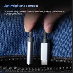 El diseño todo en uno presenta un aspecto minimalista y cables trenzados de Kevlar. Es fácil de transportar y duradero.