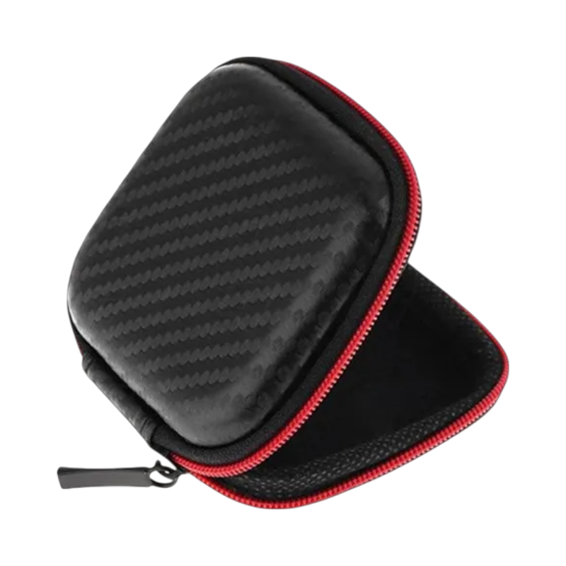 Estuche compacto KZ SQUARE CASE diseñado para la protección de auriculares, con un diseño robusto y cierre de cremallera, ideal para uso profesional y personal.