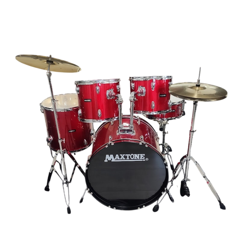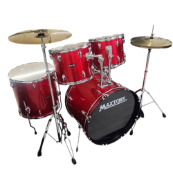 BATERIA MAXTONE MXC5004 ROJA+ ASIENTO + PLATILLOS + BAQUETAS