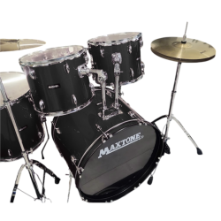 BATERIA MAXTONE MXC5004 NEGRA+ ASIENTO + PLATILLOS + BAQUETAS