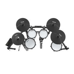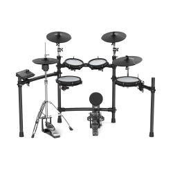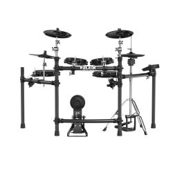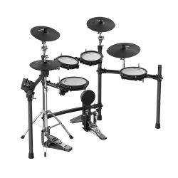 -Configuración: tambor repicador de 10″ x1, tom-tom de 10″ x1, tom-tom de 8″ x2, platillo de 12″ x3, platillo de 14″ x1, bombo x1, bastidor principal x1, pedal de batería x1, módulo de sonido x1, pedal de hi-hat x1