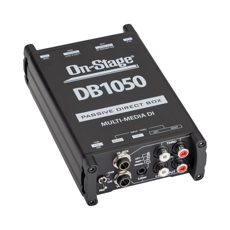 Nuestra caja DI multimedia pasiva DB1050 convierte cualquier fuente estéreo de nivel de línea en una señal mono XLR de baja impedancia lista para enviar a través de un cable largo a un mezclador o sistema PA. Entre sus características se incluyen circuitos pasivos de baja distorsión que no requieren alimentación, un interruptor de atenuación de -15 dB para evitar el recorte, un interruptor de desconexión de tierra para eliminar el zumbido del bucle de tierra, conectores de salida para pasar la señal sin alteraciones a un amplificador de escenario, un selector de entrada Hi-Z/XLR y una variedad de conectores de entrada para permitir un uso cómodo con diversas fuentes. Su resistente carcasa metálica protege los componentes internos y garantiza un rendimiento fiable.