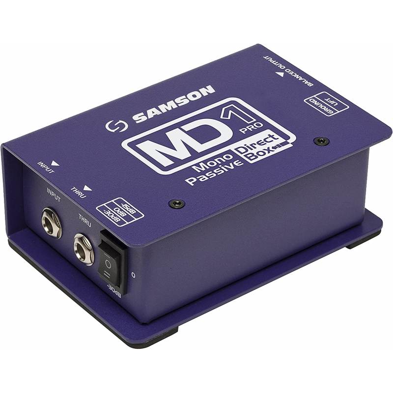 El MD1 Pro cuenta con el transformador blindado STLX Mu-Metal de Samson, que proporciona una respuesta de frecuencia ampliada y plana con una distorsión ultrabaja y una protección superior contra el zumbido y las interferencias de radiofrecuencia. La salida balanceada del MD1 Pro proporciona una señal limpia que es menos susceptible al ruido que una línea no balanceada, lo que permite utilizar cables más largos. El MD1 Pro también incluye un interruptor de atenuación de 3 posiciones (0 dB/-15 dB/-30 dB) para cambiar entre señales de nivel de línea y de altavoz.