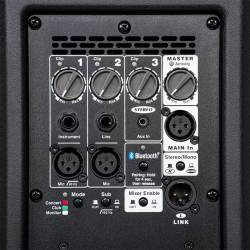 -Conectores de entrada: 2 x XLR, 2 x 1/4«, 1/8», Bluetooth y entrada principal (XLR).