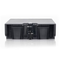 Sistema line array activo de tres vías, equipado con componentes de neodimio: 2 woofers de 10« (2,5» v.c.), que proporcionan una reproducción ampliada de graves, interactúan con un componente coaxial de neodimio (4« MF más un driver de compresión de agudos de 2,5» v.c.) montado en una guía de ondas de diseño exclusivo.