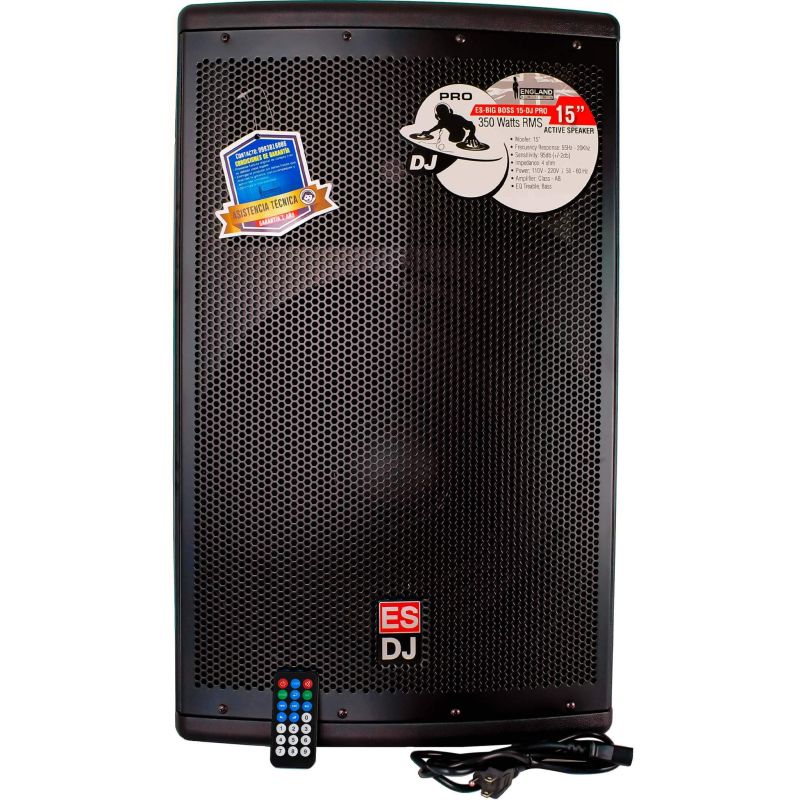 Parlante activo ESBIG BOSS 15DJ PRO con potencia RMS de 350W, rango de frecuencia de 55Hz20kHz, y conectividad Bluetooth, ideal para DJs y eventos en vivo.