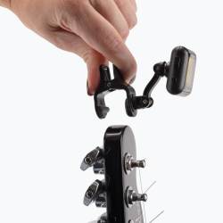 Ahorre batería con nuestro afinador recargable con clip GTA4500, que ofrece cinco horas y media de afinación con una sola carga mediante el cable USB incluido. El transductor con clip capta las vibraciones a través del cuerpo del instrumento, lo que le permite funcionar con instrumentos de cuerda eléctricos o acústicos sin necesidad de cables ni amplificadores, incluso en entornos ruidosos. La pantalla retroiluminada de alto contraste ofrece una excelente visibilidad en cualquier tipo de iluminación y se inclina y gira para facilitar la visualización desde varios ángulos. El clip está acolchado para un agarre firme que preserva el acabado del instrumento.