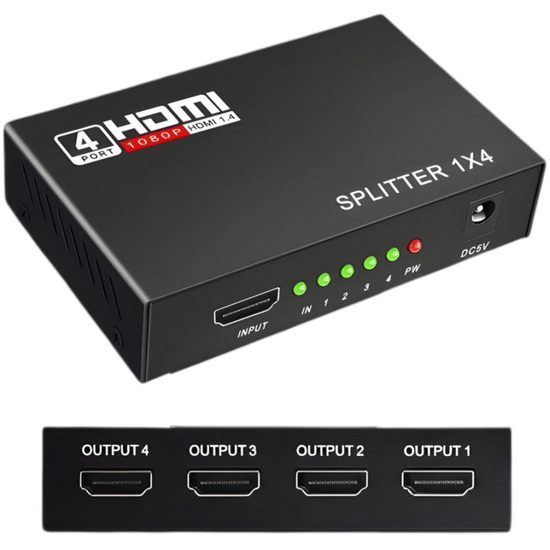 Splitter HDMI puede transmitir señales de audio y video desde el punto de origen a cuatro pantallas, lo que hace que las cuatro pantallas se vean en un solo espectáculo. Adecuado para ser utilizado en decodificadores, reproductores de DVD, reproductores D-VHS, HDTV y otros dispositivos de alta definición.