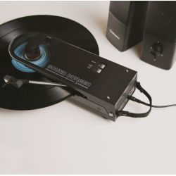 El Sound Burger ofrece una reproducción de sonido de alta calidad con un sistema de tracción por correa para reproducir discos de 33-1/3 y 45 rpm. Para lograr tanto la portabilidad como la estabilidad, el brazo emplea un sistema de equilibrio dinámico en el que la presión de la aguja se aplica mediante un resorte. Además, un motor de corriente continua de alta precisión mantiene una rotación estable. Este exclusivo giradiscos dispone de un plato de aleación de aluminio fundido a presión con sistema de amortiguación y una aguja ATN3600LC reemplazable (se vende por separado). El Sound Burger también incluye un cable de audio para quienes prefieran una experiencia de escucha analógica con cable.