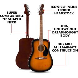 Guitarra acústica Fender California Debut Redondo, para diestros, una guitarra perfecta para principiantes para todas las edades