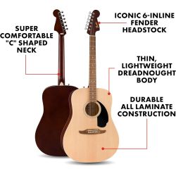 Guitarra acústica Fender California Debut Redondo, para diestros, una guitarra perfecta para principiantes para todas las edades