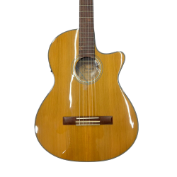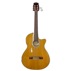 La CN-140SCE ofrece una experiencia sumamente cómoda para guitarristas de cualquier nivel: el cuerpo «thinline» de concierto la convierte en una guitarra perfecta tanto para el salón como para el escenario, mientras que el corte simple facilita el acceso a los trastes más altos. Cuando surge la necesidad de enchufarla, la electrónica Fishman® integrada en este modelo proporciona un control tonal sencillo pero potente.