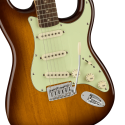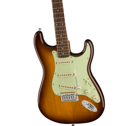 La Stratocaster Squier Affinity Series de edición limitada, con un impresionante acabado Honey Burst y golpeador Mint Green, ofrece lo mejor en diseño y sonido. Esta guitarra cuenta con un cuerpo delgado y ligero, un mástil cónico con perfil en "C" para una ejecución sin esfuerzo, un puente de doble clavija para una mayor flexibilidad de trémolo, clavijeros de eje dividido de fundición sellada para un sonido preciso, tres pastillas Squier de bobina simple y un selector de pastillas de 5 posiciones para un sonido versátil. Una guitarra que te acompañará en cada escenario.
