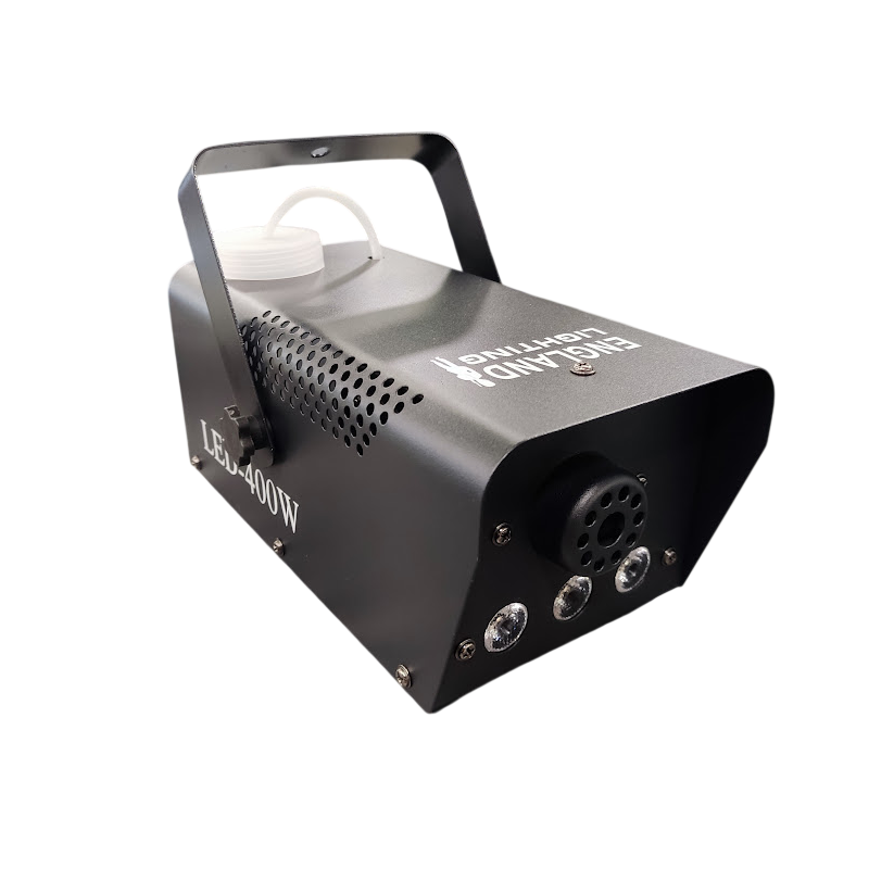Máquina de humo profesional de 400W con luces LED RGB, ideal para efectos especiales en eventos y escenarios.