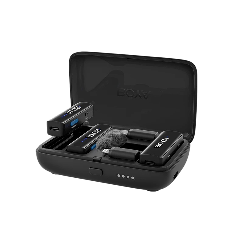BOYALINK 2 es un micrófono inalámbrico versátil y mejorado que ofrece audio impecable sin esfuerzo. Con tres adaptadores intercambiables en el receptor, garantiza compatibilidad total con cámaras, dispositivos móviles y computadoras. Agrega cancelación de ruido en 2 niveles y un alcance mejorado de hasta 300 metros en línea de visión. BOYALINK 2 es el compañero inalámbrico perfecto para transmisiones en vivo, creación de contenido y entrevistas en la calle.
