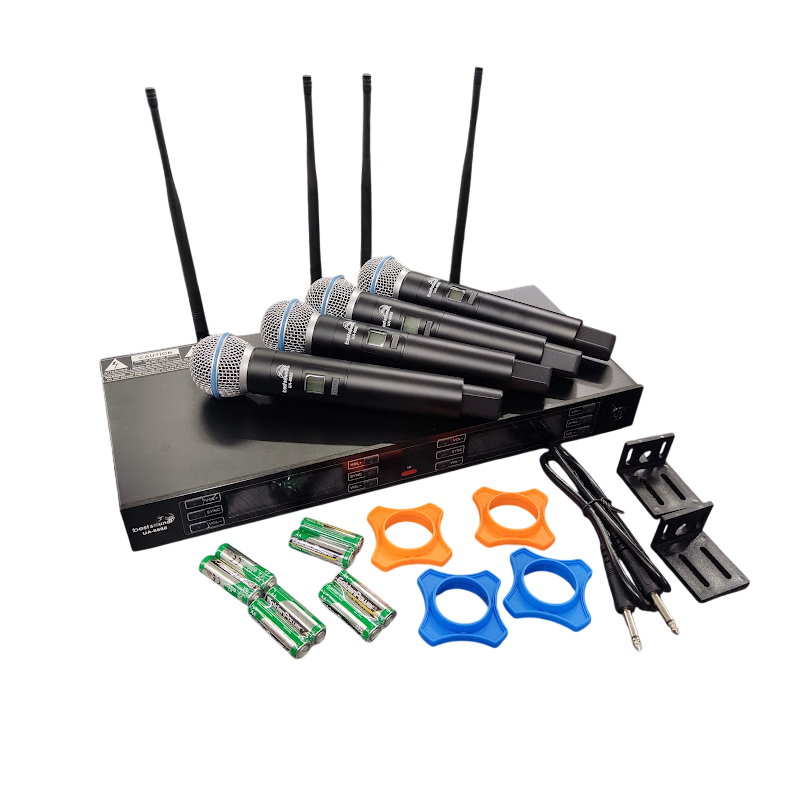 Kit 4 micrófonos inalámbricos UHF / RACK