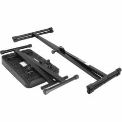 El soporte para teclado KS7190 Single-X proporciona una base amplia y estable y un soporte antideslizante para teclados de formato pequeño. Este versátil soporte se ajusta en altura y longitud para adaptarse a diversos tamaños de teclado y estilos de interpretación, y cuenta con manguitos antideslizantes ajustables para adaptarse a una gran variedad de anchuras de teclado.