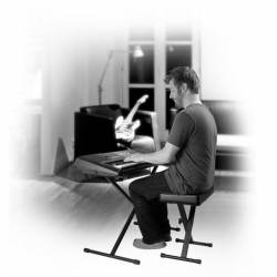Diseñado para tocar de forma ergonómica, banco para teclado/piano KT7800 de tres posiciones y estilo X cuenta con un cojín de asiento suave pero firme que ofrece una comodidad y un apoyo excepcionales. El asiento está sostenido por una base excepcionalmente estable que se ajusta en altura para adaptarse a una gran variedad de estilos de interpretación.