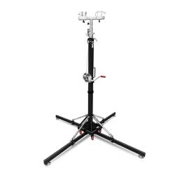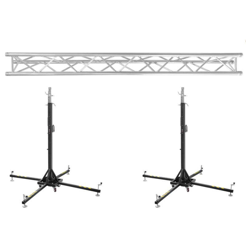 Con sistema se puede rápidamente elevar un sistema line array y luces sin mayor esfuerzo y ocupando mucho menos espacio que las estructuras normales.